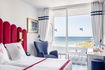 Our Deluxe Sea View rooms with Balcony are all about the light and the Mediterranean breeze. Their floor-to-ceiling windows let you look out over the calm sea from the bed. All rooms have all have walk-in showers, and statement headboards and they are full of elegant details from 'La Dolce Vita' Style.